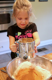 Lily had some problems with the sifter, so patting it on the sides worked just great to move the ingredients through the sieve.