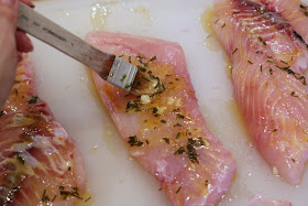 Brush this sauce liberally over both sides of the fish filets.  I like to first do one side...