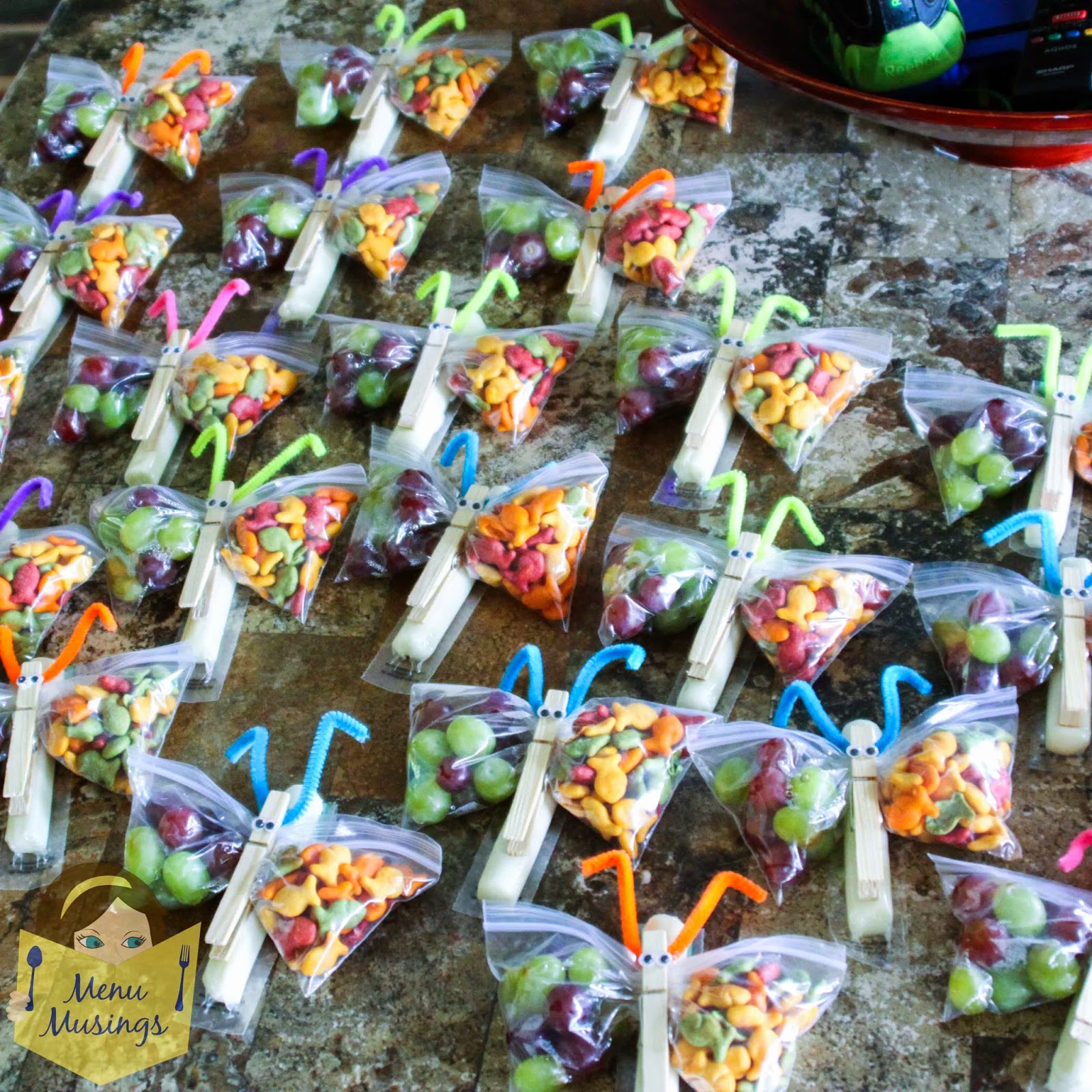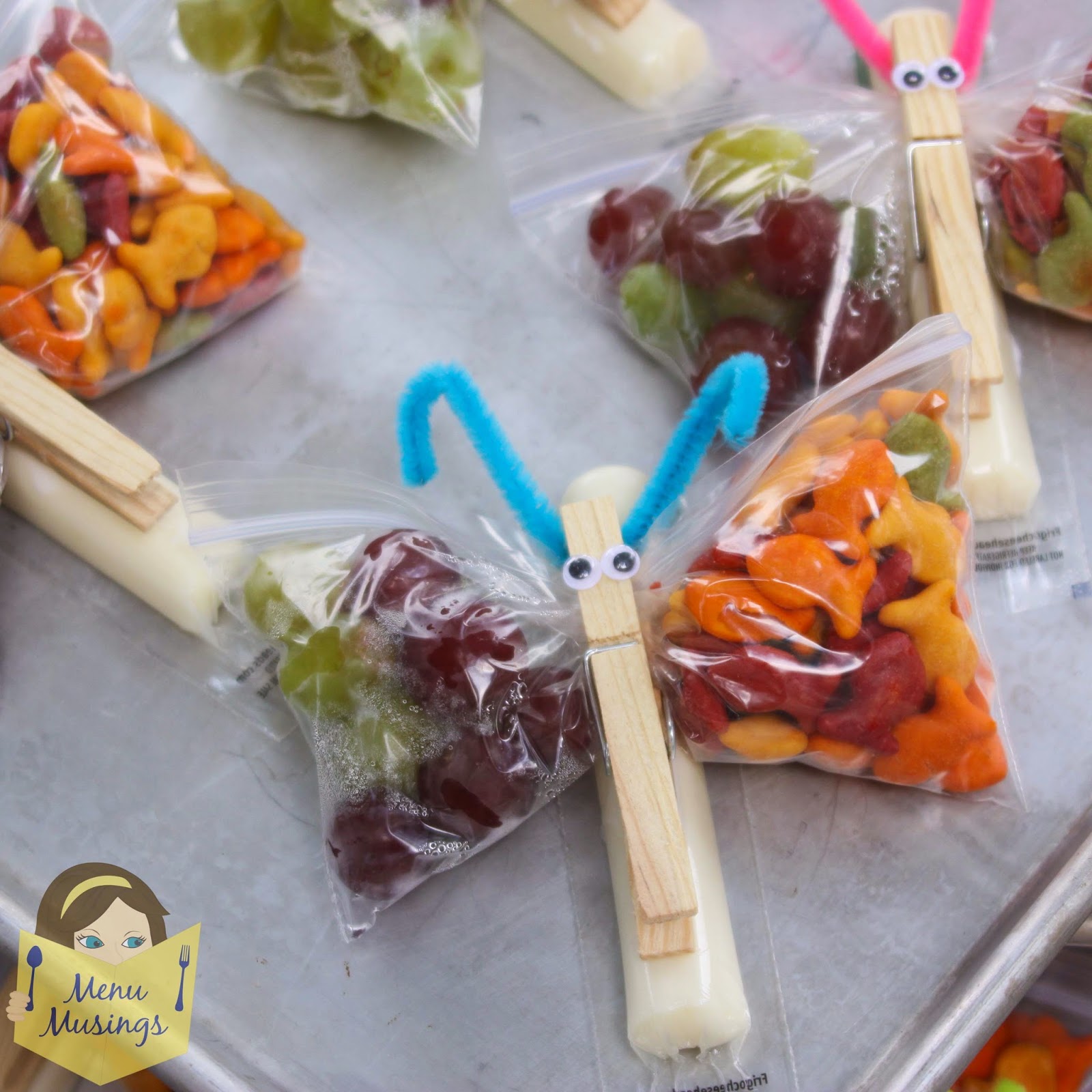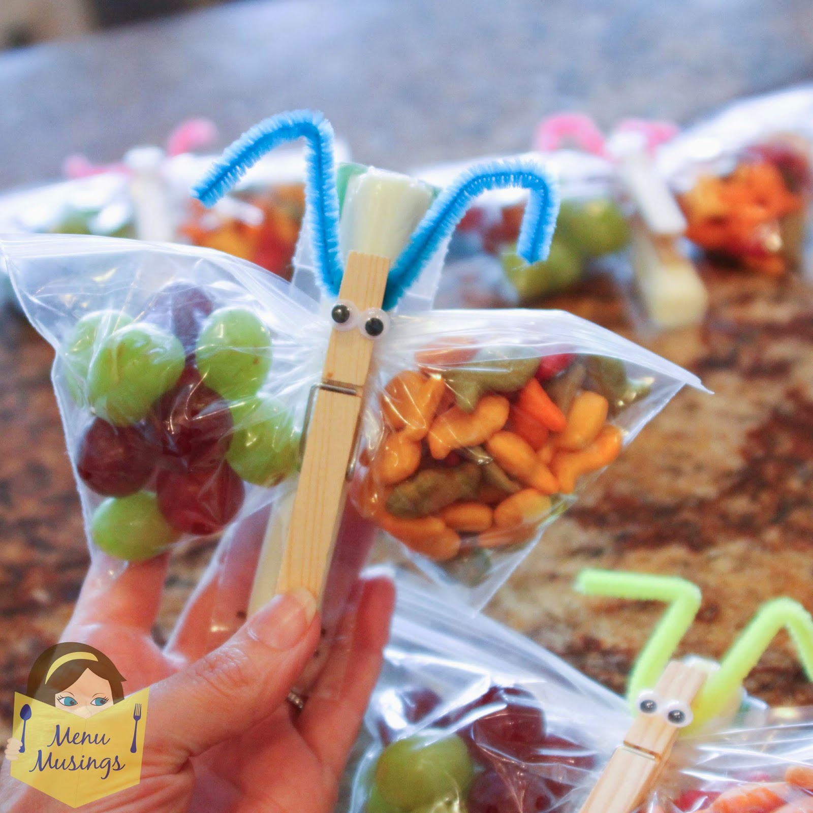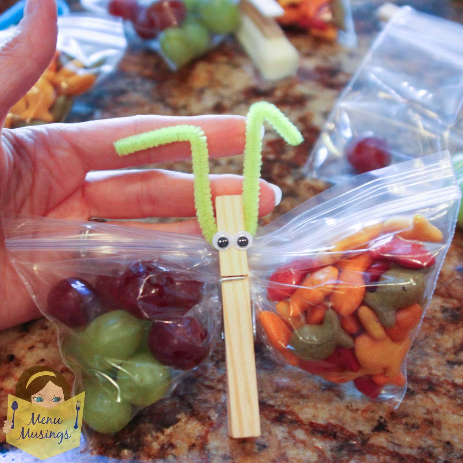 Somehow I always end up getting signed up as snack helper during the first week of school. But really, that works out okay for me because classes haven't started back for me yet at the university so that makes it a little easier; and also, it gives the kids an opportunity to be the classroom helper for the day, which I think is a good ice breaker for them. Our schools really prefer that we send healthy snacks for the kids, and you know that I'm on board with that, so these cute little butterfly snack bags are what we chose to make for "round 1" of snack helper. FYI - This academic year, I'll have kids in the 11th, 9th, 1st, and kindergarten! Lord have mercy on me!