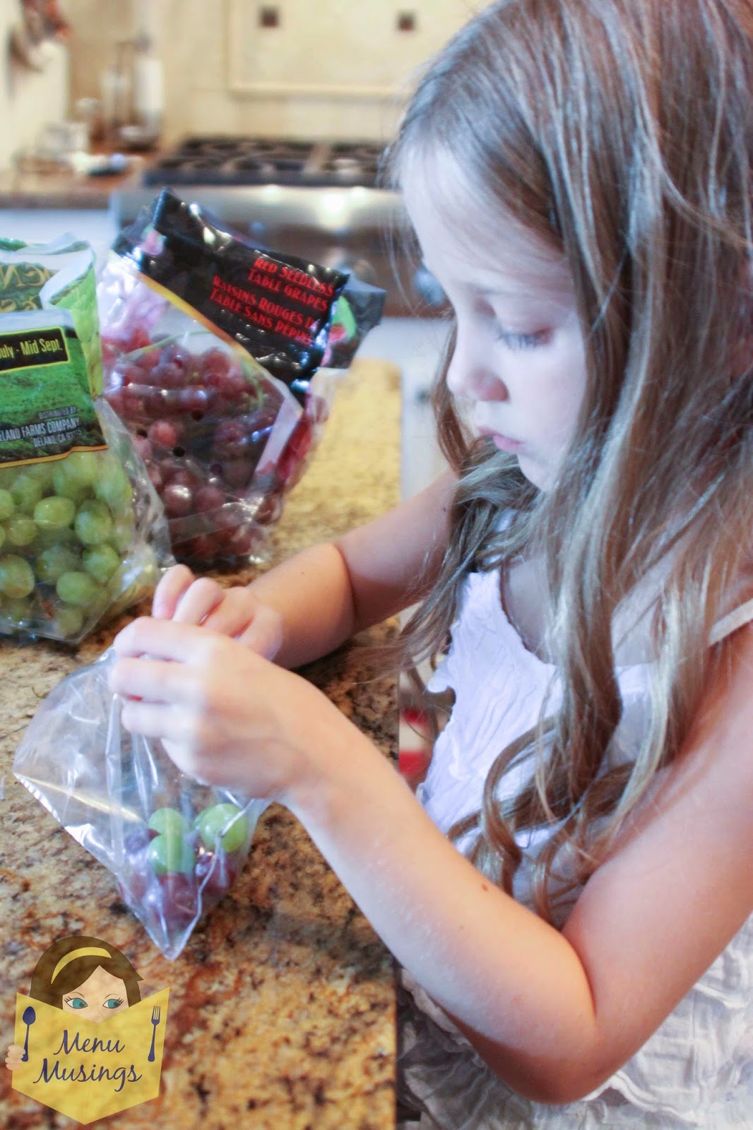 By all means, if your young elementary-aged child, or even preschooler is making these for their class, please enlist their help. So many elements of this project is beneficial to them. Even if it is just sorting or counting out the grapes for the bags - it's all part of the learning process.